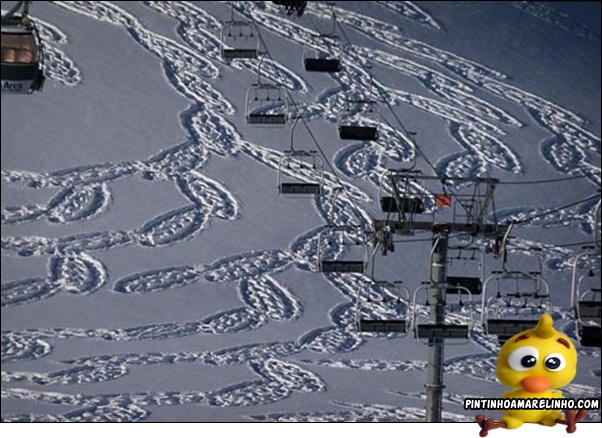 O britânico Simon Beck se especializou em criar grandes figuras sobre lagos congelados na região de Les Arcs (França). Algumas obras do artista são tão grandes e complexas que chegam a ocupar uma área equivalente a seis campos de futebol.